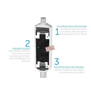 Esse refil tem a capacidade de absorver o cloro, o que melhora o sabor da água e reduz substâncias químicas e orgânicas indesejadas. Além disso, ele retém barro, areia, ferrugem e outras partículas acima de 5 micras, garantindo uma água mais limpa e saudável para o consumo.