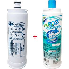 Fabricante/marca do refil: WFS e POLICARBON Modelo: WFS-028 equivalente ao refil PRÉ C+3 Modelo: PB 603 equivalente ao refil C+3 Eficiência da retenção de partículas: Classe III Eficiência da redução de Cloro livre: Aprovado KIT composto: 1 unidade PB 603 + 1 UN WFS-028