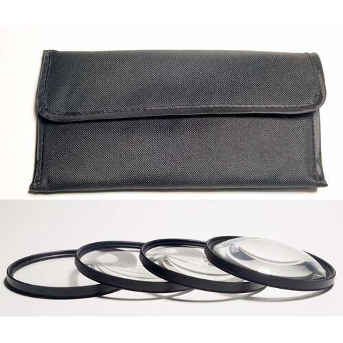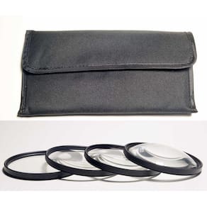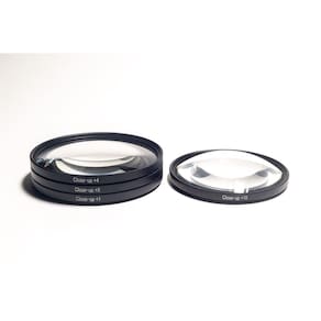 Conjunto de 04 lentes Close-up para fotografica Macro Reduz a distância mínima de foco da sua lente. KIT contém lentes +1, +2, +4 e +10 que podem ser usadas individualmente ou combinadas entre si para obter maior aproximação conforme a necessidade (devido à curvatura, as lentes +4 e +10 não permitem que sejam rosqueadas outras lentes sobre elas. Mas estas podem ser usadas em conjunto com as +1 e +2).