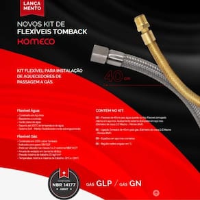 especificações técnicas: - conexão flexível gás/água: 1/2 - comprimento flexível gás/água: 40cm - pressão máxima flexível água: 100 m. C. A - temperatura máxima flexível água: 100°c - material interno flexível água: corrugação normal inox 304 - material externo flexível água: malha trançada inox 304 - conector flexível gás/água: macho bsp - fêmea bsp - material interno/externo flexível gás: cobre tomback - tipo de gás flexível tomback: gn/glp - pressão máxima de trabalho flexível gás: 20 kgf/cm² - temperatura mínima e máxima de trabalho flexível gás: -10°c a +130°c