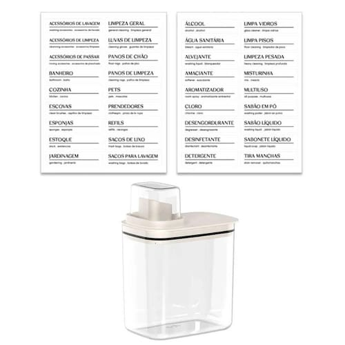 O kit Flow chegou para facilitar a separação e organização dos seus produtos de limpeza, composto por um dispenser com tampa medidora com sistema de caimento interno para que o líquido que sobra retorne ao recipiente, evitando desperdícios. ideal para armazenar amaciante, sabão líquido ou desinfetante. O conjunto conta ainda, com etiquetas identificadoras desde produtos tradicionais como amaciante, água sanitária e sabão em pó até itens de organização, como sacos de lixo, jardinagem e acessórios de passar. Deixe sua lavanderia personalizada e com seus itens sempre a mão com os produtos Ou.