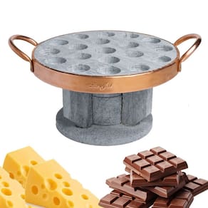 Kit fondue em pedra sabão com fogareiro. Ideal para fondue de queijo, chocolate e outros preparos. Pedra sabão mantém o calor por mais tempo e distribui a temperatura uniformemente. Fogareiro oferece aquecimento estável e seguro. Visual rústico elegante.Bica móvel