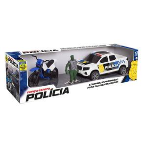 O Brinquedo Kit Polícia Força Tarefa é equipado e preparado para qualquer missão. Vem com uma pick-up, um policial e uma moto roda livre com suspensão traseira em mola para você brincar de montão!