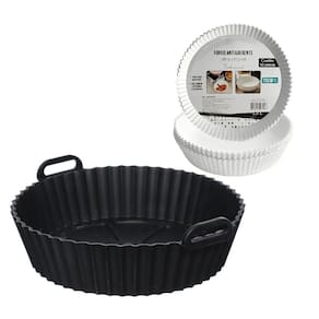 Forma redonda de silicone para air fryer, forno e micro-ondas. Possui relevo para circulação de ar embaixo do alimento. Resistente a temperaturas de -40ºC a 240ºC. Antiaderente, sem óleo, livre de BPA. Pode ser utilizada em: micro-ondas, forno, freezer e air fryer. Pode ir na lava louças.