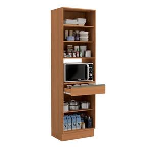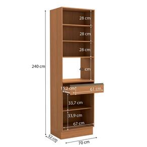 Sua cozinha merece a beleza e a qualidade do Kit Forno G751 da Cozinha Maxxi da Kappesberg. Em MDP de 15mm, o que garante robustez e qualidade, são 2,40m de altura, 70cm de largura e 52cm de profundidade, perfeito para todos os projetos. Com quatro portas e uma gaveta, é ideal para guardar louças e mantimentos, além de uma prateleira reforçada em 25mm para eletrodomésticos. Com rodapé, ele acompanha as ferragens para ser montado suspenso na parede. E se preferir, você pode adquirir os pés separadamente. Com sete camadas de pintura na cor canela, seu acabamento touch, com a textura dos veios da madeira, garante conforto e aconchego ao espaço. O destaque são as dobradiças com amortecimento nas portas e o puxador em alumínio na cor champagne, garantindo um design único e moderno.