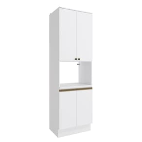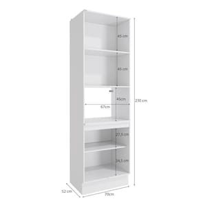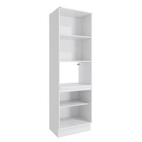 Acabamento: Pintura Brilho | Acabamento da Fita Borda: Papel | Cor: Branco | Dobradiça: Com Amortecimento | Garantia: 3 meses para defeito de fabricação | Matéria-prima: MDF | Peso suportado por cada prateleira: 7 kg | Puxadores: Puxadores de Metal e de Alumínio | Quantidade de prateleiras: 4 | Sistema de montagem: Parafuso Philips