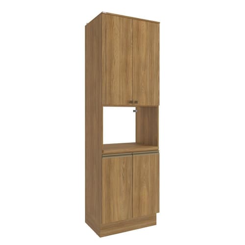 Sua cozinha com toda a beleza e praticidade do Kit Forno N729 da Cozinha Celeste da Kappesberg. Produzido em chapa MDF de 15mm, ele garante robustez, firmesa e qualidade, além de um acabamento perfeito. Com sete camadas de pintura na cor nogueira, tanto na parte interna quanto na externa, seu acabamento touch, com a textura dos veios da madeira, além de combinar com todos os ambientes, garante a sensação de conforto e aconchego ao espaço, remetendo aos tons da natureza e deixando sua cozinha perfeita. A peça ideal para quem busca por otimização de espaço, contando com quatro portas e quatro prateleiras, além de prateleira reforçada em 25mm para eletrodomésticos, como forno ou microondas. Fechando ótimas combinações com balcões e aéreos, o destaque fica para as dobradiças com amortecimento, garantindo um fechamento suave e sem ruídos, incluindo mais durabilidade. E seus puxadores metálicos na cor dourada completam o design e a qualidade da cozinha, deixando seu ambiente ainda mais estiloso. Renove seu espaço e o deixe ainda mais completo com a Cozinha Celeste da Kappesberg.