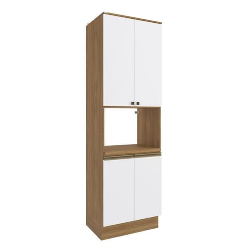 Sua cozinha com toda a beleza e praticidade do Kit Forno N729 da Cozinha Celeste da Kappesberg. Produzido em chapa MDF de 15mm, ele garante robustez, firmesa e qualidade, além de um acabamento perfeito. Com sete camadas de pintura tanto na parte interna quanto na externa, a caixaria possui pintura touch na cor nogueira, contando com a textura dos veios da madeira, enquanto que as portas, com pintura na cor branca, possuem acabamento em brilho. Uma combinação linda e moderna, que garantirá mais luminosidade e aconchego ao espaço, deixando sua cozinha perfeita. A peça ideal para quem busca por otimização de espaço, contando com quatro portas e quatro prateleiras, além de prateleira reforçada em 25mm para eletrodomésticos, como forno ou microondas. Fechando ótimas combinações com balcões e aéreos, o destaque fica para as dobradiças com amortecimento, garantindo um fechamento suave e sem ruídos, incluindo mais durabilidade. E seus puxadores metálicos na cor dourada completam o design e a qualidade da cozinha, deixando seu ambiente ainda mais estiloso. Renove seu espaço e o deixe ainda mais completo com a Cozinha Celeste da Kappesberg.