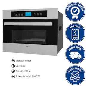MICRO-ONDAS FISCHER PLATINIUM DE EMBUTIR 35 LITROS 127V INOX COM GRILL E SISTEMA FLAT PLATE 17411(18915)