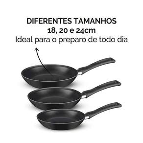 Conteudo da embalagem: 3 Frigideiras (18cm 20cm E 24cm).