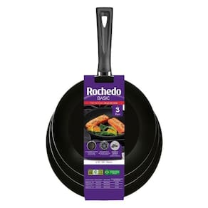 Pensando nas necessidades da sua rotina, a Rochedo traz o Kit de Frigideiras Antiaderentes Rochedo Basic com 3 pecas de tamanhos 18cm, 20cm e 24cm. Voce nao sabia que esse kit era tao essencial ate perceber que voce ira utiliza-lo em diferentes momentos na cozinha, desde o omelete do cafe da manha ate um jantar para a familia. As Frigideiras Basic da Rochedo possuem antiaderente interno e externo, facilitando a limpeza e o preparo dos alimentos. Nao gruda nada! Alem disso possuem Base Limpa Facil - Nao gruda, nao mancha e e facil de limpar. O Kit de Frigideiras Basic conta com a qualidade da marca Rochedo, presente no Brasil ha mais de 100 anos, e livre de substancias toxicas (PFOA) e pode ser utilizado em fogao a gas, vitroceramico e eletrico, exceto inducao.