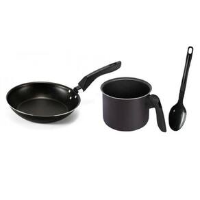 Kit frigideira e canecão fervedor leiteira antiaderente teflon com espatula cor grafite