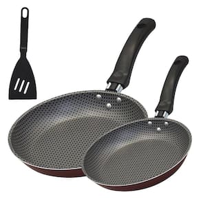 Kit Frigideira Francesa Enjoy 18cm/22cm com Espátula - Vermelha Feitas para proporcionar um cozimento uniforme e eficiente, as frigideiras francesas contam com um design elegante e ergonômico, garantindo o máximo conforto durante o preparo de suas receitas. Para tornar a experiência ainda mais completa, conta com uma espátula feita de nylon, perfeita para manipular seus pratos com precisão e delicadeza. Com uma superfície antiaderente, poderá cozinhar com confiança, sem preocupações com alimentos grudados no fundo da panela. -Não esquentar a panela vazia Cozinhar com fogo médio ou baixo -Usar somente utensílios de plástico ou madeira ESPECIFICAÇÕES: Material: Liga de Alumínio Antiaderente e Nylon Dimensões: -Frigideira 22cm: Comprimento:38cm x Larg.: 22cm x Alt.: 4cm -Frigideira 18cm: Comprimento: 34cm x Larg.: 18cm x Alt.: 4cm -Espátula: Comprimento: 25,5cm x Larg: 8cm Peso: Aprox. 445g CONTÉM: 01 KIT FRIGIDEIRA FRANCESA ENJOY 18CM/22CM COM ESPÁTULA - VERMELHA