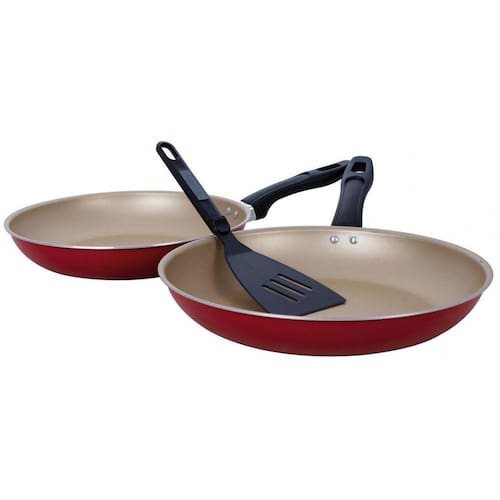 Kit Frigideira Francesa Enjoy Vermelha Com Espátula Alegrete Produzida em alumínio. A frigideira francesa enjoy tem um cabo resistente e vai facilitar o seu dia a dia por ser antiaderente, dando mais saúde à sua família por usar menos óleo e por ser mais fácil de limpar. Contém: 1 frigideira francesa enjoy 18cm / 1 frigideira francesa enjoy 22cm / 1 espátula Cor: vermelho Material: alumínio Medidas da embalagem: 37cm comp. X 7cm alt. X 23cm larg. Peso: 0,500kg