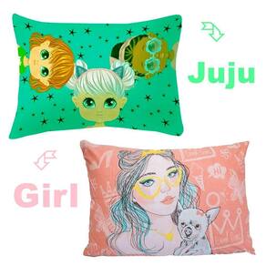 Conteúdo e Medidas: Kit Fronha Malha Estampa Localizada - Girl e Juju - 02 Peça 02 - Fronha Malha Estampa Localizada(48cm x 68cm (Para travesseiro até 50cm x 70cm)
