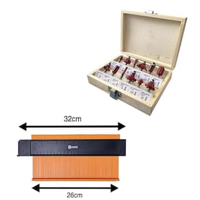 Gabarito copiador de contornos perfis tamanho grande 250x140mm com trava charbs + jogo de fresas para tupia madeira 6mm com 12 peças charbs