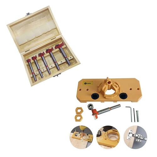 Gabarito de Furação Para Dobradiças Khi-Hinge - CHARBS + Kit 5 Brocas Forstner Fresa 15 a 35mm para Dobradiça Charbs