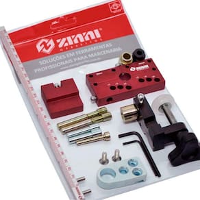 Kit Gabarito Minifix Tamborfix Furação MDF 15, 18 E 25 Zinni Kit Gabarito Minifix Tamborfix Furação MDF 15, 18 E 25 Zinni Kit no modelo Encartelado, gabarita as furações nas chapas de MDF/MDP 15mm para dispositivos de montagem do tipo: Tamborfix ou minifix 15mm. Acompanha o Bloco Flauta, utilizada na furação dos parafusos dos sistemas tamborfix, minifix e cavilhas 8mm. - Marca: ZINNI GABARITOS - Modelo: ZKIT3 - Segunda geração: versão mais recente - Kit no modelo Encartelado, gabarita as furações nas chapas de MDF/MDP 15mm para dispositivos de montagem do tipo: Tamborfix ou minifix 15mm. - Acompanha o Bloco Flauta, utilizada na furação dos parafusos dos sistemas tamborfix, minifix e cavilhas 8mm. - Também aplicável nas chapas de MDF/MDP 18mm e 25mm, no entanto para furação do canal do tambor de Minifix centralizado, utilizar o Bloco Flauta e os pinos delimitadores para achar o centro do MDF/MDP. Itens inclusos: - 1 Gabarito Grampo Escala - 1 Mascara Intercambiável - 15mm - 1 Escala Milimétrica - 1 Pino Escala - 1 Stopper Escala - 1 Bloco Flauta - 1 Bucha de Furação 5mm - 1 Bucha de Furação 8mm - 2 Pinos Delimitadores Prata para ser com fita de borda - 2 Pinos Delimitadores Dourados para ser sem fita de borda - 2 Parafusos allen M5x10mm - 2 Chaves allen Marca: Não Informado