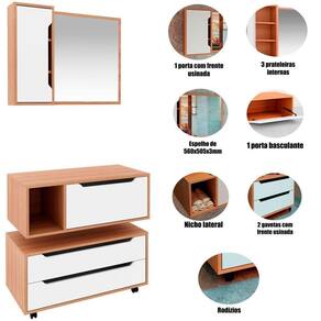 Kit Gabinete Balcão E Espelheira De Banheiro 80 Cm Karina Amêndoa/branco