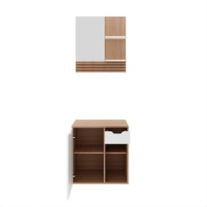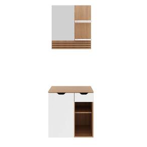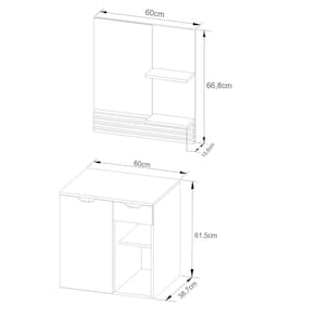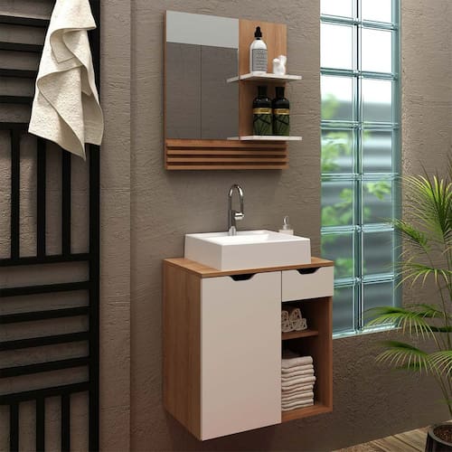 CARACTERÍSTICAS TÉCNICAS: - Produzida em MDP de 15 mm - Acabamento UV na cor Branco e Amêndoa - Acompanha Espelho - Gavetas com Corrediça Metálica - Puxador tipo Cava - Balcão Suspenso *Cuba NÃO incluso, apenas demonstrativo *Kit Composto por Gabinete Suspenso (3605) e Espelheira (3614)