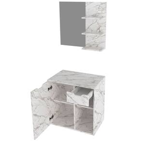 • 1 x Gabinete de Banheiro 60 cm 1 Porta 1 Gaveta Romana 1 x Cuba para Gabinete de Banheiro 1 x Espelheira para Banheiro 60 cm com 3 Prateleiras Romana Manual de Montagem Acessórios de Montagem