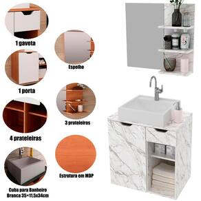 • Material: Gabinete e Espelheira: Estrutura em mdp / Cuba: Mármore sintético