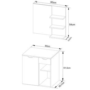 • Largura: Gabinete: 60 cm / Cuba: 35 cm / Espelheira: 60 cm