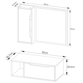 • Largura: Gabinete: 80 cm/Espelheira: 80 cm