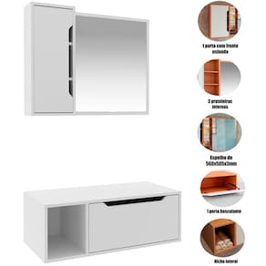 Kit Gabinete e Espelheira de Banheiro 80 cm Karina - Branco