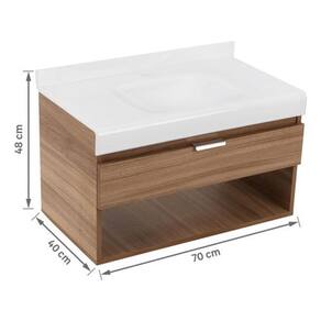 Elegante e funcional, este gabinete para banheiro na cor marrom e branco e ideal para quem busca estilo e praticidade. Feito em MDF, o movel possui dimensoes de 70x40x48 cm, oferecendo um tamanho medio que se adapta bem a diferentes espacos. O modelo Lille 70 inclui uma cuba de sobrepor, proporcionando um conjunto harmonioso e conveniente. A gaveta, tambem em MDF, tem 15 mm de espessura e suporta ate 15 kg, equipada com um puxador metalico cromado que adiciona um toque de sofisticacao. O gabinete vem montado, facilitando a instalacao, e possui certificacao FSC r , garantindo a procedencia sustentavel da madeira. Ideal para quem valoriza a resistencia a umidade e impacto, alem de uma organizacao eficiente no banheiro.