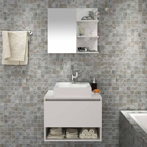 O Kit para Banheiro é a escolha ideal para dar um toque de elegância e organização ao seu espaço. Com um design contemporâneo, ele transforma o ambiente em um local mais convidativo e prático. Fabricado com materiais de alta qualidade, o kit oferece durabilidade e um visual sofisticado, tornando seu banheiro ainda mais funcional e bonito. CARACTERÍSTICAS TÉCNICAS: - Produzida em MDP de 15 mm - Acabamento UV na cor Branco e Mármore Branco - Cuba em Mármore Sintético - Acompanha Espelho - Porta Basculante com Articulador e Dobradiças Metálicas - Puxador tipo Cava - Balcão Suspenso *Kit Composto por Gabinete Suspenso (3606), Espelheira (3608) e Cuba (3630) INFORMAÇÕES TÉCNICAS: 3606: Alt. 46,5 cm x Larg. 60 cm x Prof. 38,7 cm x P. 12 kg 3608: Alt. 54 cm x Larg. 60 cm x Prof. 15,6 cm x P. 6,2 kg 3630: Alt. 11,5 x Larg. 35 x Prof. 334 cm P. 5,5 kg INFORMAÇÕES ADICIONAIS: - ATENÇÃO: Não trabalhamos e não nos responsabilizamos pela montagem do móvel. Antes da montagem conferir se o produto está de acordo com o que comprou, produto montado e danificado pela montagem não será aceito troca. Montagem e instalação por conta do comprador. - As imagens ambientadas são meramente ilustrativas e podem apresentar itens que não compõe o produto. As cores do produto podem variar de acordo com o monitor, a iluminação do ambiente ou sua percepção visual. - Limpeza: Deve ser feita com pano macio e seco ou levemente umedecido com água e sabão neutro. Não devem ser utilizados abrasivos como palha de aço e objetos cortantes. -Garantia para defeitos de fabricação conforme Código de Defesa do Consumidor.