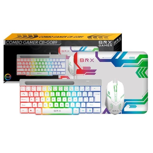 Kit gamer combo brx branco com teclado, mouse e mousepad - cb-g089w Conjunto completo para quem busca desempenho e design em um setup compacto. O kit inclui teclado de 62 teclas com iluminação led, mouse óptico com até 2400 dpi e mousepad emborrachado com bordas costuradas. Ideal para uso em jogos e atividades do dia a dia. Teclado: Modelo: brx combo cb-g089w Cor: branco Número de teclas: 62 Teclas multimídia: sim Iluminação: led Material: plástico abs Tecnologia: cúpula de borracha Vida útil das teclas: 5 milhões de cliques Curso total das teclas: 3,0 mm 0,4 mm Comprimento do cabo: 1,4 m Tensão de trabalho: dc +5v 0,25v Corrente de trabalho: Marca: Não Informado
