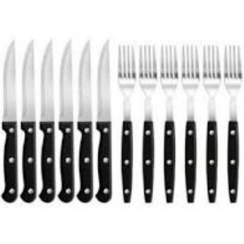 Kit Garfo E Faca 12 Peças Cabo Preto CARACTERISTICAS DO PRODUTO Material em inox, polipropileno Indicada para uso domiciliar e profissional Marca: Unyhome Imagens meramente ilustrativa Embalagem 12 Peças DIMENSÕES Faca: 21,8cm 28g Garfo: 19,6cm 27g Ean: 7899670809685