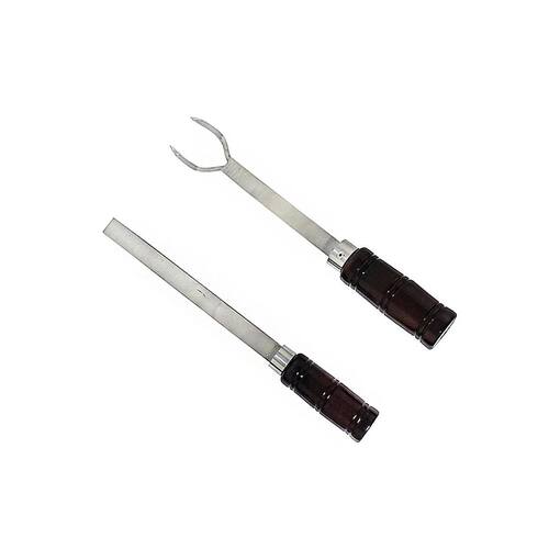 Kit Garfo Longo e Batedor de Sal para Churrasco Cabo Madeira DESCRIÇÃO DO PRODUTO Garfo: o garfo é um excelente acessório para o seu churrasco e tem diversas formas de utilizar ao seu favor durante o assado. Ele pode ser para virar carnes em uma grelha, para firmar a carne na hora de cortá-la e entre muitas outras formas de usar o garfo, pois ele exerce sua função perfeitamente, podendo sempre te satisfazer. Batedor de Sal: O nosso batedor de sal é excelente para tirar o excesso de sal que permanece na sua carne após assá-la. Ele é um acessório muito essencial para você ter na hora do assado, pois com ele você evita tirar o excesso de sal da carne com outros acessórios que não são apropriados para isto, como por exemplo, uma faca, que utilizando para esta função, desgasta a sua lâmina fazendo a mesma perder o fio que contém. Sobre o Produto: Material dos Produtos: Alumínio Material do Cabo: Madeira Unidades por Kit: 01 Garfo e 01 Batedor de Sal Medidas: Batedor de Sal: Diâmetro do Cabo --- 3,5cm Comprimento do Cabo --- 15cm Comprimento da Lâmina --- 31,5cm Espessura da Lâmina --- 5mm Comprimento Total --- 46cm Peso: 0.20 Kg Garfo: Diâmetro do Cabo --- 3,5cm Comprimento do Cabo --- 15cm Comprimento da Ponta --- 28cm Comprimento Total --- 43cm Peso: 0.15 Kg Marca: Não Informado