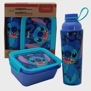 O kit garrafa + Pote Hermético Stitch é uma excelente escolha para quem busca praticidade, qualidade e economia na hora de transportar suas refeições. Perfeito também para presentear aquela pessoa especial.