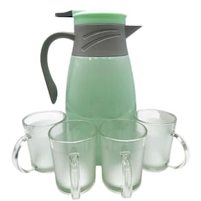 Versátil: Para bebidas quentes e frias. Prático: Fácil de transportar e limpar. Elegante: Design moderno e sofisticado. Completo: Garrafa térmica + 4 canecas. Kit Garrafa Térmica 1 Litro C/ 4 Xicaras Canecas Vidro 220ml