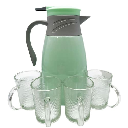 Adquira o seu hoje e eleve seus momentos de convívio a um novo patamar de sofisticação e praticidade com nosso Kit Garrafa Térmica 1 Litro com 4 Canecas em Vidro 220ml.