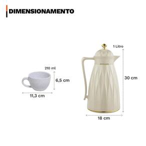 Distribuído por feheros shop Conjunto garrafa térmica café chá 1l premium click abre e fecha com 4 xícaras pires cerâmica 210ml Atenção Este conjunto foi desenvolvido para quem busca sofisticação, praticidade e qualidade em cada detalhe. A garrafa térmica 1 litro premium luxo conserva suas bebidas quentes ou frias por várias horas com máxima eficiência, enquanto o conjunto de 4 xícaras com pires em cerâmica premium adiciona charme e requinte à mesa posta. Ideal para transformar o café da manhã, reuniões de trabalho, visitas ou qualquer ocasião especial em momentos inesquecíveis. Informações do produto A garrafa térmica premium combina design moderno com funcionalidade, oferecendo praticidade no uso diário e elegância em qualquer ambiente. Com capacidade para 1 litro, é perfeita para conservar café, chá ou outras bebidas quentes e frias. Seu sistema click de abertura e fechamento garante agilidade, vedação eficiente e preservação da temperatura por mais tempo. As xícaras de cerâmica premium com capacidade de 210ml cada, acompanhadas de pires delicados, completam o conjunto com estilo e resistência. Compatíveis com micro-ondas, são fáceis de limpar e ideais para servir café ou chá com sofisticação, tornando este kit indispensável para compor a mesa posta com bom gosto e praticidade. Especificações técnicas do produto - design sofisticado e versátil que valoriza a mesa posta e combina com qualquer estilo de ambiente - sistema click de abertura e fechamento que proporciona praticidade, eficiência e evita vazamentos - isolamento térmico de alta qualidade que mantém líquidos quentes por até 6 horas e frios por até 12 horas - estrutura resistente produzida em polipropileno atóxico com ampola interna de vidro - acabamento premium com design moderno que une durabilidade e sofisticação - alça ergonômica que facilita o transporte com conforto e segurança - xícaras e pires em cerâmica premium de alta resistência, durabilidade e fácil limpeza - capacidade de 210ml em cada xícara, ideal para servir café ou chá em quantidades generosas - compatibilidade com micro-ondas, permitindo aquecer bebidas de forma prática e segura Ficha técnica do produto - capacidade garrafa: 1 litro - altura garrafa: 30 cm - peso garrafa: 650 g - material externo garrafa: polipropileno premium - material interno garrafa: ampola de vidro - sistema: click abre e fecha com vedação hermética - conservação: até 6 horas líquidos quentes e até 12 horas líquidos frios - alça: anatômica e ergonômica - capacidade xícaras: 210 ml cada - medidas xícaras: 11,3 cm comprimento, 8,8 cm largura, 6,5 cm altura - material xícaras e pires: cerâmica premium - quantidade peças conjunto: 4 xícaras e 4 pires Antes e depois do primeiro uso - antes do uso: lave a garrafa com água morna e sabão neutro para remover resíduos de fabricação. Realize o pré-aquecimento com água quente ou o pré-resfriamento com água fria conforme a bebida desejada. Lave as xícaras e pires com detergente neutro e esponja macia. - após o uso: lave a garrafa manualmente com sabão neutro e esponja macia, evitando produtos abrasivos e não utilize em micro-ondas, freezer, geladeira ou lava-louças. Para as peças em cerâmica evite choques térmicos e lave sempre com cuidado para preservar a durabilidade. Itens inclusos no pacote - 01 garrafa térmica café chá 1 litro premium click abre e fecha - 04 xícaras de cerâmica premium 210ml - 04 pires de cerâmica premium Todas as fotos são reais dos produtos. Qualquer dúvida, estamos à disposição. Dúvidas frequentes 01 - o kit é novo Acompanha 03 - a garrafa mantém a bebida quente por quanto tempo R: a tecnologia de isolamento térmico garante bebidas quentes por até 6 horas e frias por até 12 horas.