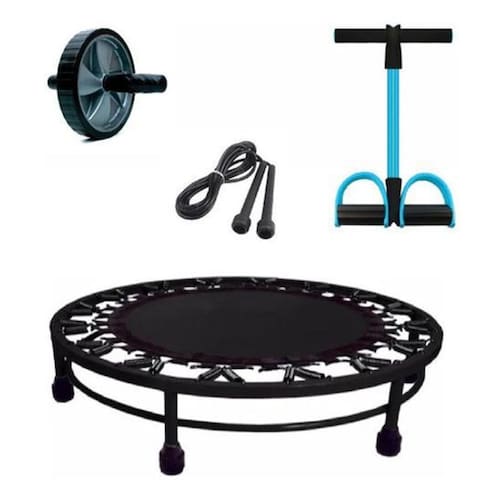 - mini jump - roda abdominal - corda de pular - extensor elástico com apoio para pés