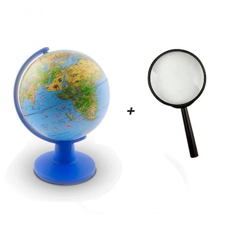 Mini globo terrestre físico com ilustrações da fauna animal típica de continente do mundo. Globo Terrestre Político Mini Safari, produzido na Itália pela Tecnodidattica, líder mundial em globos . Mini Globo geográfico com animais e símbolos representando terrítorios e culturas de cada continente e seus respectivos paises.