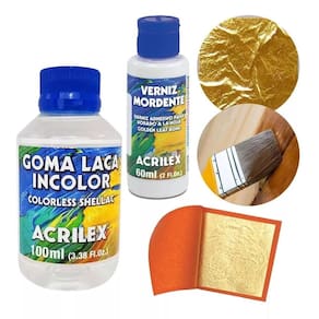 1 verniz mordente acrilex 60ml + 1 goma laca incolor 100ml acrilex