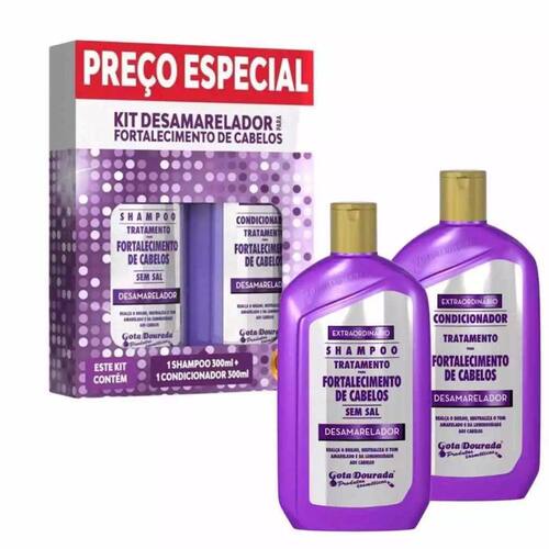 O Kit Desamarelador Gota Dourada Shampoo 300ml + Condicionador 300ml é ideal para quem busca neutralizar o amarelado dos fios e deixar os cabelos mais luminosos e saudáveis. Formulado com ingredientes poderosos, como a Arginina, o Kit Desamarelador Gota Dourada proporciona hidratação profunda e restauração dos cabelos. Ele combate o ressecamento, controla o frizz e oferece brilho intenso, deixando seus fios mais radiantes e alinhados desde a primeira aplicação. Neutraliza o amarelado: O shampoo e o condicionador agem neutralizando o tom amarelado dos fios, devolvendo a cor natural dos cabelos. Hidratação profunda: A fórmula com Arginina proporciona uma hidratação intensa, deixando os fios mais macios e restaurados. Brilho radiante: O uso regular do Kit Desamarelador Gota Dourada Shampoo 300ml + Condicionador 300ml confere brilho e vitalidade aos cabelos. Controle de frizz: O kit combate o frizz, deixando os cabelos mais alinhados e com aparência saudável. Fortalece os fios: A Arginina presente na fórmula fortalece os cabelos, prevenindo danos e quebra.