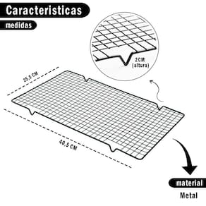 A Grade antiaderente é um utensílio de confeitaria fácil e prático de utilizar; Ideal para usar como apoio para doces e salgados que recém saíram do forno, possibilitando de fazer uma nova fornada; Grade composta de metal vazado com pés possibilitando de resfriar a parte inferior do alimento; Antiaderente e ela também ajuda a reduzir o tempo de resfriamento. Outra função da Grade na confeitaria é no processo de glaçagem, ela permite que você jogue a cobertura sobre o bolo/sobremesa e que o excesso escorra, deixando o acabamento perfeito.