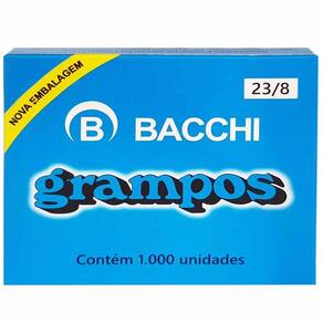 Grampos O Grampo Para Grampeador 23/8 Galvanizado Caixa C/1000 Unidades Bacchi é perfeito para uso em escritórios ou gráficas, para ser utilizado em grampeadores com perfuração entre 20 e 50 folhas.