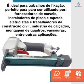 Inclui:1 Grampeador pneumático Rocama 80W1 Grampo para grampeador pneumático 80/06mm Rocama - 6000 GramposGrampeador Pneumático Profissional 80w Rocama DESCRIÇÃO DO PRODUTO:O Grampeador Pneumático Rocama é ideal para trabalhos de fixação, perfeito para para ser utilizado por: fornecedores de moveis, instaladores de pisos e tapetes, eletricistas e trabalhadores da construção civil, indústria de calçados, montagem de quadros, vassouras, entre outras aplicações. É indispensável para profissionais que necessitam de alta produtividade e um equipamento de qualidade, versátil e pode realizar muitas funções de fixação pesadas.BENEFÍCIOS:O Grampeador Pneumático Rocama é leve e muito fácil de ser operado, sendo muito versátil, proporciona uma fixação mais precisa e segura, com maior agilidade sem fazer força para usar o grampeador, possui bico longo que facilita a aplicação em cantos e locais de difícil acesso, com baixo nível de ruído e alta velocidade.CARACTERÍSTICAS:O Grampeador Pneumático Rocama é fabricado com material de alta qualidade, com trava de segurança e mínimo índice de manutenção, com baixo nível de ruídos, e alta velocidade. É recomendado utilizar o grampo da linha 80/10 grampos Gram Serv.INFORMAÇÕES GERAIS:Comprimento: 215mm x Altura: 160mm - Peso: 0,75kg Pressão normal de operação: 60-100PSI (4.14-6.89bar) Capacidade de grampo: 120pcsGrampo para grampeador pneumático 80/06mm Rocama Esse grampo garante alta performance e firmeza para suas atividades. CaracterísticasModelo: 80/06Aplicação: Grampeador Rocama 80Especificações:Material: Aço;Acabamento: Zincado;Marca: Rocama