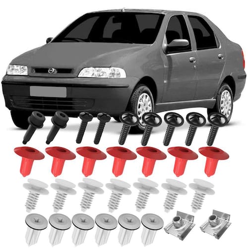 Kit com 31 Peças Grampos Presilhas Buchas e Parafusos Para Forro Porta Dianteira Siena G2 2001 até 2007