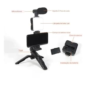 Eleve a qualidade de seus vídeos com esse Kit de Gravação 4 em 1! Adaptável para qualquer modelo de smartphone com seu suporte universal, grave vídeos com mais estabilidade utilizando um tripé resistente ou se preferir, ele pode também ser utilizado como um suporte para gravação manual, luz LED de 6500K e um microfone para deixar seu vídeo com uma qualidade incrível [acompanha cabo P2 - P2].