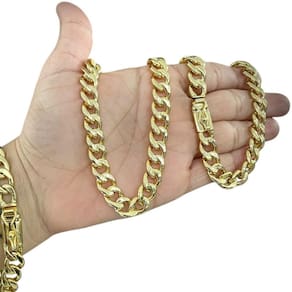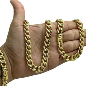 Kit Grumet Pit Bull 10mm Banhado a Ouro 18K Detalhes do Produto: Material: ligas metálicas de alta qualidade, especialmente tratadas para fixação e absorção do ouro, com acabamento em verniz protetor. Aparência: visual idêntico ao ouro maciço. Produção: artesanal, com atenção meticulosa aos detalhes. Banho: 10 camadas espessas de ouro 18k, finalizadas com verniz antialérgico . Elos: soldados varia conforme o modelo . Pedras: zircônias brilhantes cravejadas quando aplicável . Tamanhos Disponíveis: Cordões Masculinos: 70cm padrão e 60cm sob consulta/Pedido Via Chat . Cordões Femininos: 50cm padrão e 45cm sob consulta/Pedido Via Chat . Pulseiras: 21cm padrão ; tamanhos de 18cm a 23cm sob consulta/Pedido Via Chat. Pingentes: conforme imagens; consulte para mais detalhes via chat. Espessuras Recomendadas para Cordões / Pingentes: P: 1mm a 4mm M: 4mm a 8mm G: 6mm a 13mm Gg: 12mm a 18mm Incluso na Compra: Saquinho de organza para armazenamento seguro. Caixa elegante, perfeita para presente. Cupom de desconto para a próxima compra. Flyer com outros produtos da coleção. Carta de agradecimento personalizada. Adesivo da marca ToJoia18k. Informações Adicionais: : 6 meses termos acompanham o produto . Devolução: 7 dias para devolução sem questionamentos. Envio: despacho em até 24 horas úteis após confirmação do pagamento. Cuidados com a Peça: Evite contato com produtos químicos; aguarde o perfume secar antes de usar. Evite contato com shampoo, condicionadores e suor excessivo. Armazene em local seco, preferencialmente no saquinho de organza fornecido. Uso no mar e piscina é permitido; lave com água corrente e sabão neutro após. Por que Escolher a ToJoia18k Semi-joias luxuosas que combinam estilo, qualidade e sofisticação. Banho espesso de ouro 18k, garantindo brilho duradouro e acabamento impecável. Design exclusivo e produção artesanal, perfeitos para qualquer ocasião. Materiais premium que asseguram durabilidade. Ao escolher uma semi-joia ToJoia18k, você investe em qualidade, elegância e uma experiência única. Aguardamos sua compra Observação: pode ocorrer variação no fecho raramente . Imagens reais, sem edição. Qualquer dúvida, estamos à disposição para esclarecimentos. Marca: Não Informado