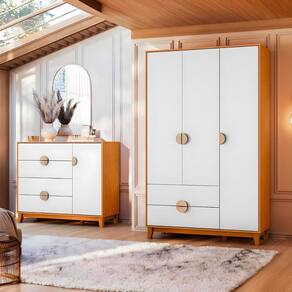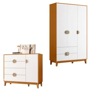 Este conjunto de guarda roupa e cômoda é o complemente perfeito para o seu quarto. Com um design moderno e funcional, estes móveis oferecem espaço de armazenamento extra para manter o seu espaço organizado e elegante. Adicione um toque de sofisticação ao seu espaço com este conjunto de guarda roupa e cômoda.