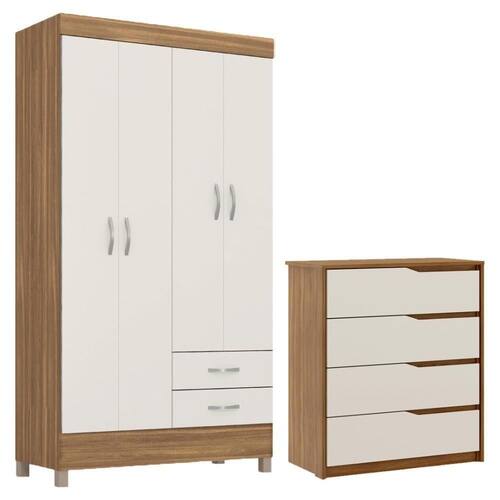 Kit Guarda Roupa Solteiro 4 Portas Astro Cômoda Atria